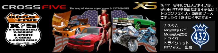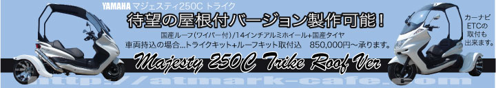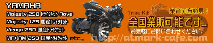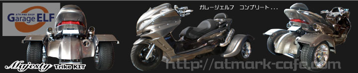 ↑↑↑ ラジオフライヤー専用HP ↑↑↑★★★ATV・トライク シーズン到来!★★★ ★★★★★★ マジェスティトライク125Fi中古即納車 あります ★★★★★ 中古車あります...マジェ125トライク/マジェ250トライク/ユナリATV/KW ATV マジェスティ250cc他...下記車両でもトライク製作いたします。 マグザム・スカイウェイブ・ジェンマ・ドラックスター・マグナ ![]() いよいよ発売開始!!詳細はガレージエルフHPにて... ゾクゾクと国産車種トライクキットが...しかも...ALL国産!! 乞うご期待 ![]() 愛知/岐阜/三重県他東海地域の皆様... @cafe ATV事業部より直接納車可能です。 ご自宅まで納車に伺います、お気軽にお問い合わせください ![]() ![]() 関東地域の皆様... ガレージエルフより直接納車可能です。 2010y 9/4・5...スーパーウィークエンド! A66ブース 無事終了! 2009y 8/29・30...スーパーウィークエンド! A66〜68ブース 無事終了! ドラゴンフェイス様/車工房匠様/なごみ様/P&H様/レイクタホ様他...ご協力ありがとうございました。 ![]() ![]() ![]() ![]() クロスファイブ...大荒れの天候デモ...大盛況! 無事終了〜 ついに... マジェスティ250cc トライクキット デビュー! FULL_KIT 588,000yen / 税込・送料別 KIT_ONLY 513,000yen / 税込・送料別 CONPLETE ASK yen / 税込・工賃・登録費・送料等別 FULL_KIT→12inch ホイール・タイヤ付 / KIT_ONLY→ホイール・タイヤ 別 / CONPLETE等詳くはTRIKE KITページへGo! ![]() ![]() 2009 1/9〜1/11 東京オートサロン・幕張メッセにて...マジェスティ250 トライクキット発表! |